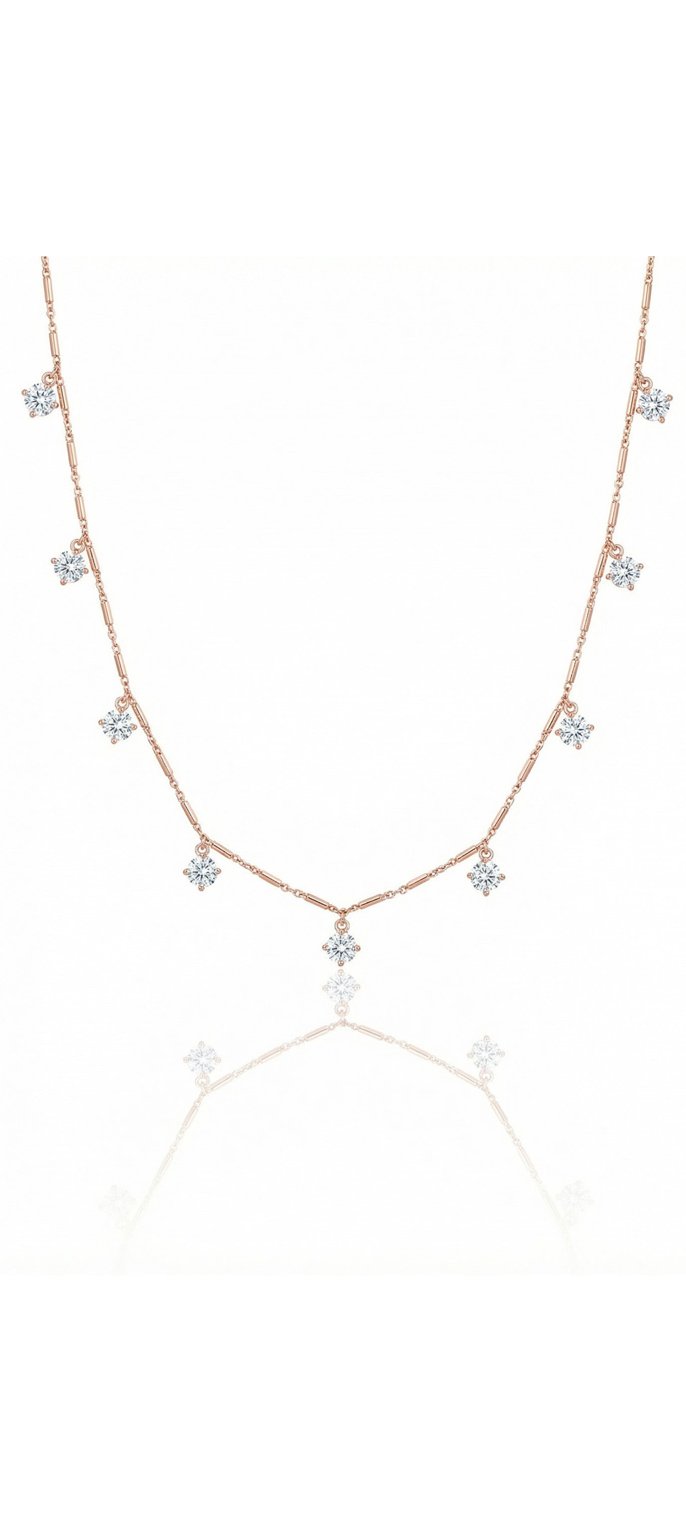 This golden necklace for women features circular american diamond charms interspaced throughout the chain length. Perfect for special occasions and gifting to your loved ones