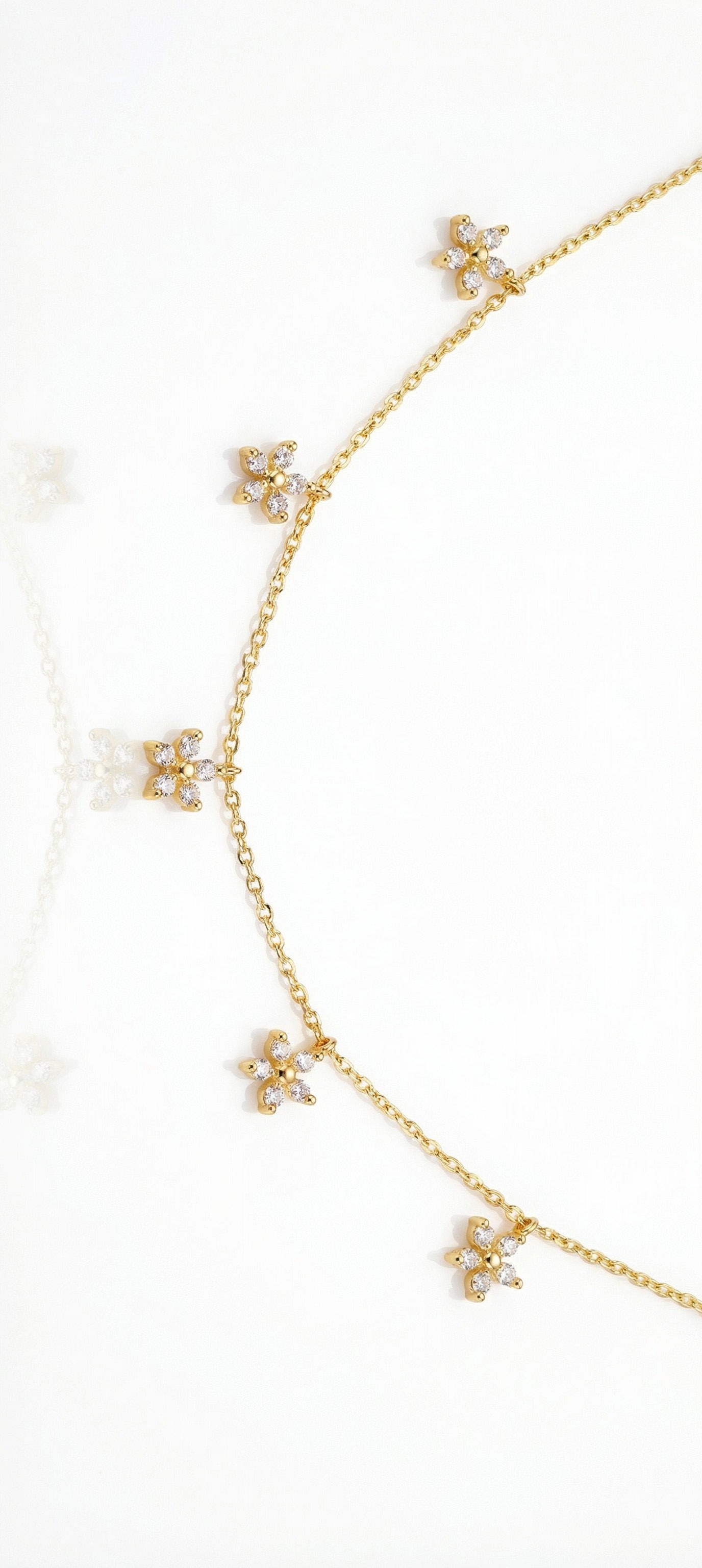 This golden necklace for women features interspaced star motifs set with american diamond throughout the chain. Perfect for gifting to your loved ones