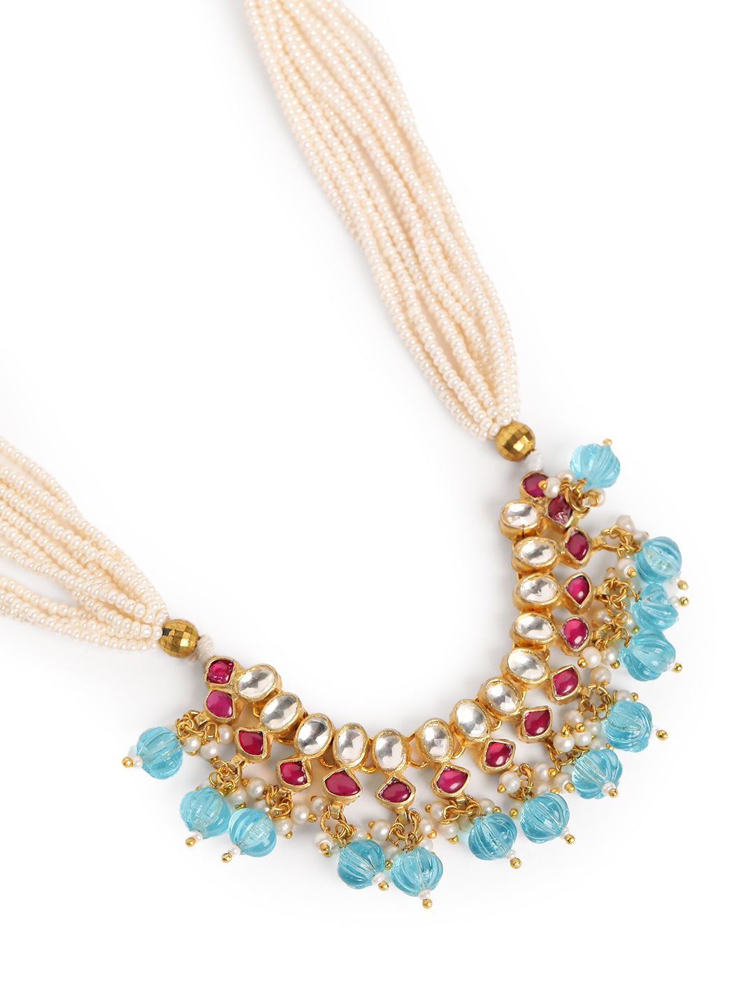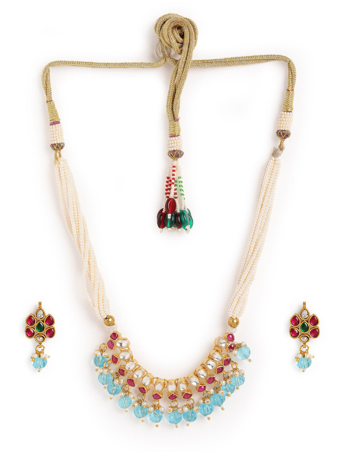 22K Gold Plated Royal Sage Kundan Necklace Set