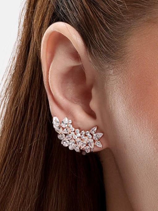 Add a touch of brilliance to your look with these leaf-inspired cluster earrings. Designed in a graceful curved silhouette, they sparkle with finely set AAA cubic zircon stones that catch the light from every angle. Perfect for weddings, festive occasions, or elevating an evening outfit, these earrings bring together e