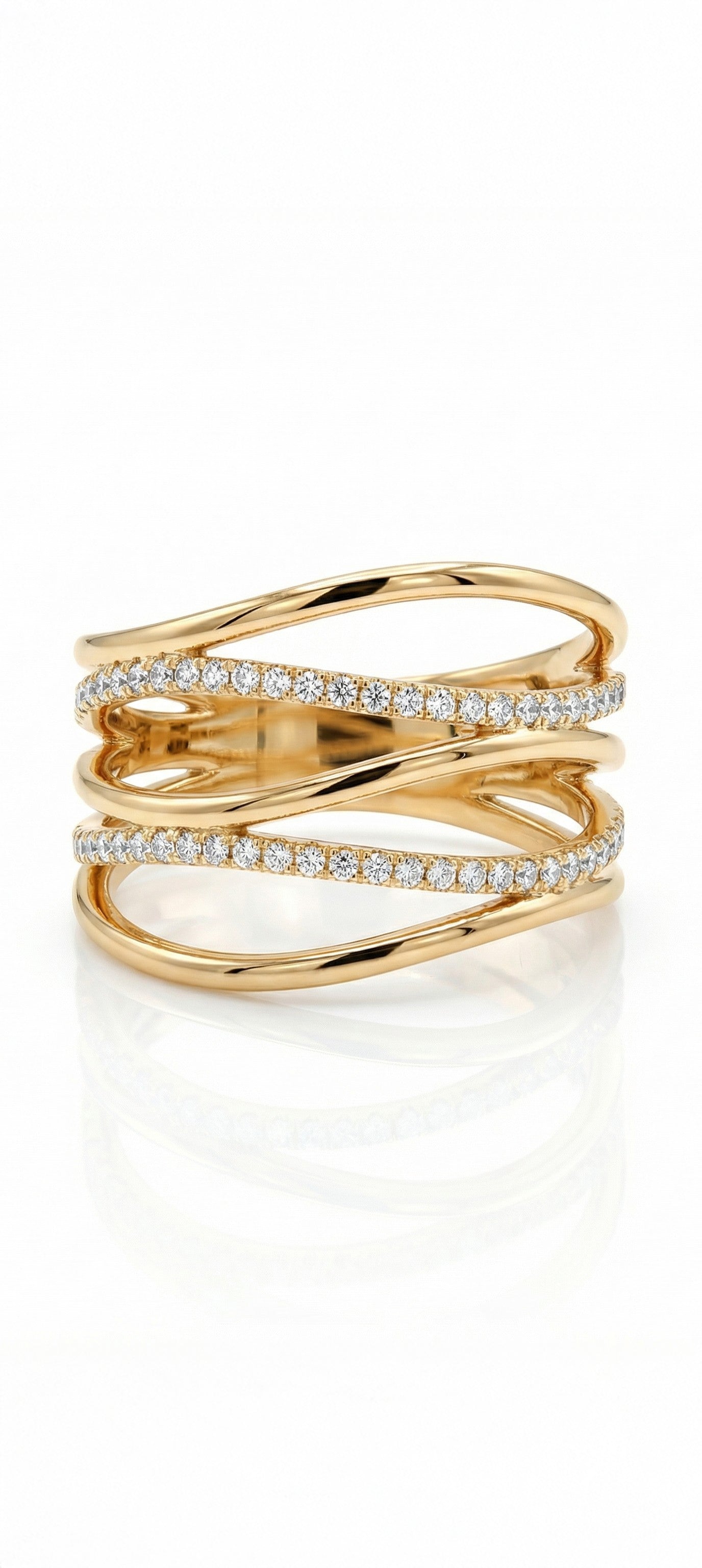 This american diamomd golden ring for women has a layered wave design with studded with zircon. Perfect for gifting to your bestie