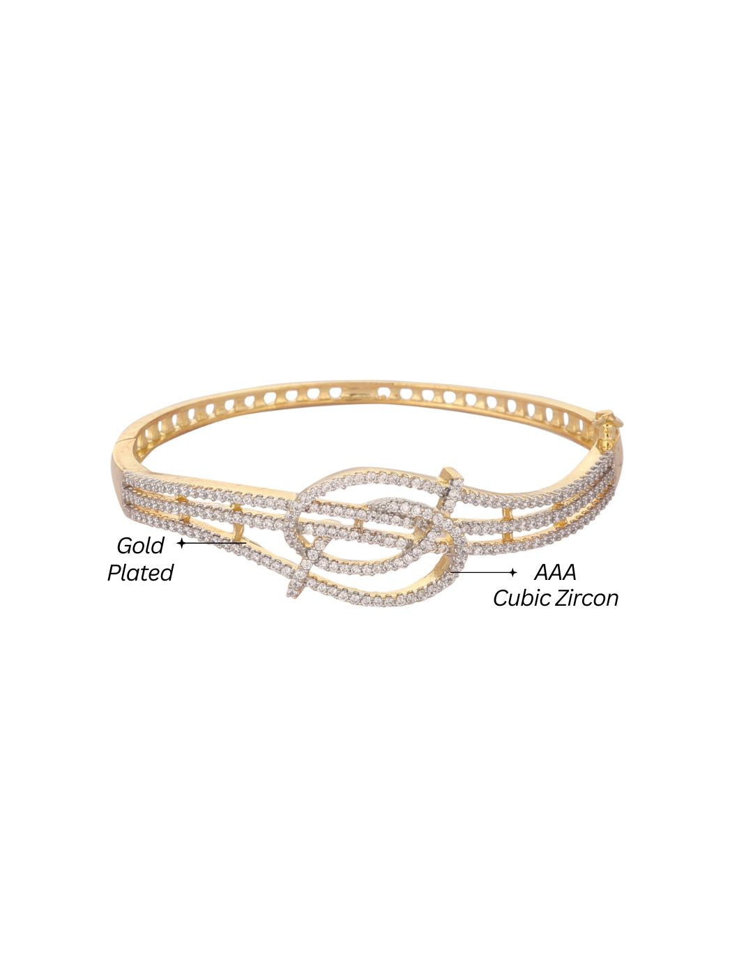 A sleek and modern bracelet crafted with dazzling AAA cubic zirconia in an elegant interlocking design. Its minimal yet striking look makes it perfect for both daily wear and special occasions. Secured with clip on closure. This comes with 1 year plating warranty, anti-tarnish for lasting shine and comfort. Fits up to