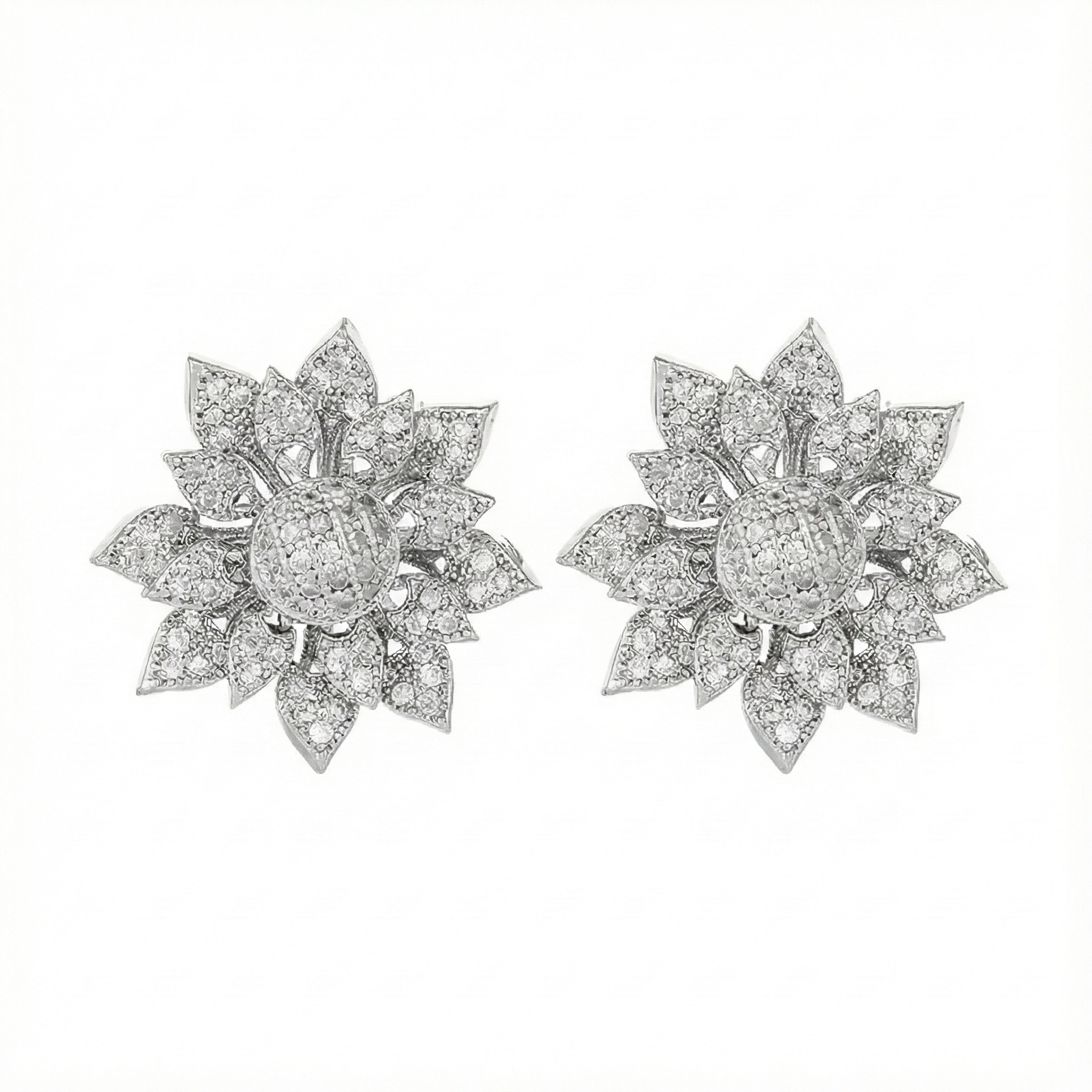 Rhodium-Plated Rhinestone Studded Floral Shaped Statement Studs