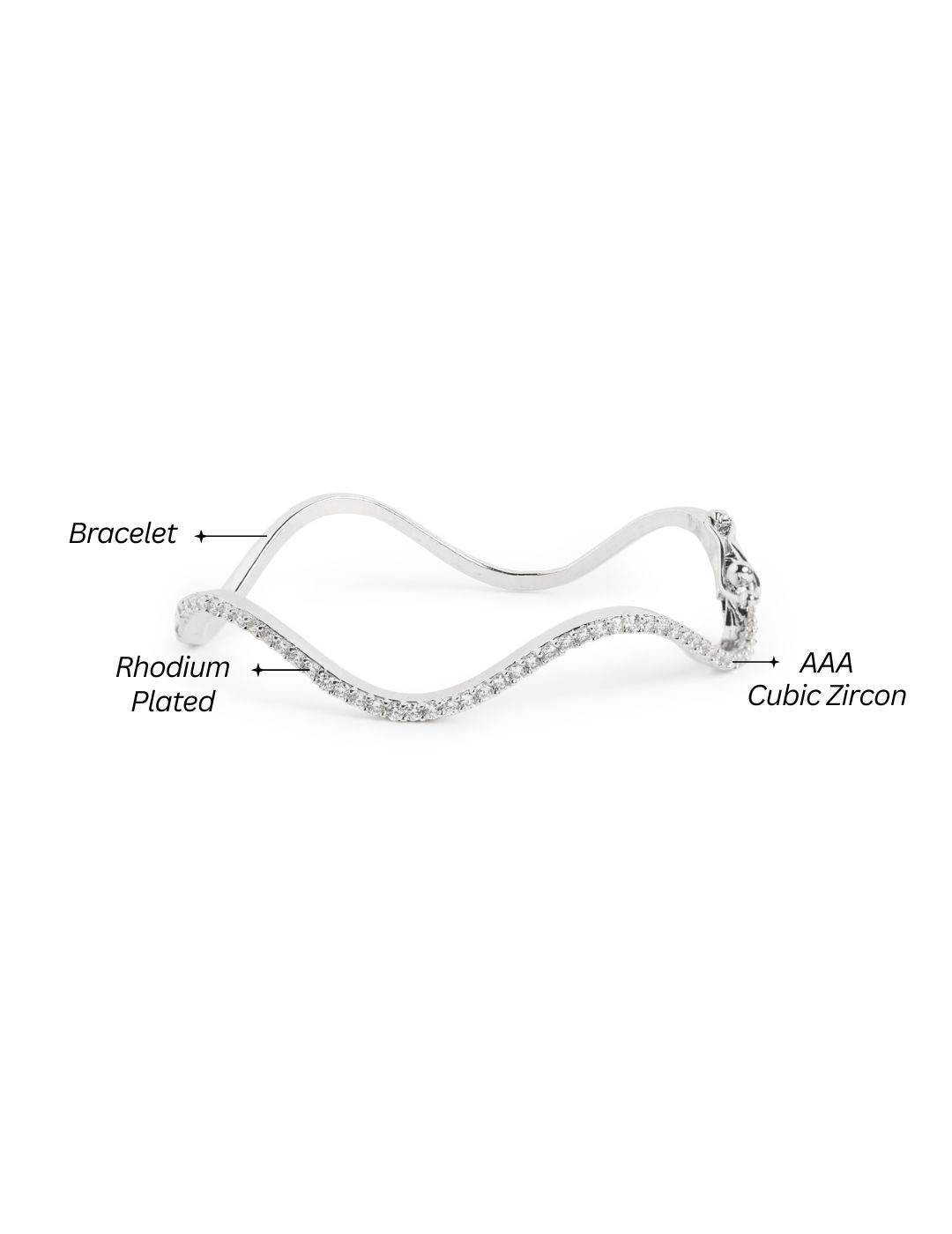 This sparkling zircon studded wavy bracelet, designed to add effortless glamour to any look. Its fluid curve, set with dazzling AAA Cubic Zircon stones, creates a striking yet graceful silhouette. Perfect for cocktail parties, weddings, or a chic night out. Lightweight and versatile, makes it perfect for both daily wea