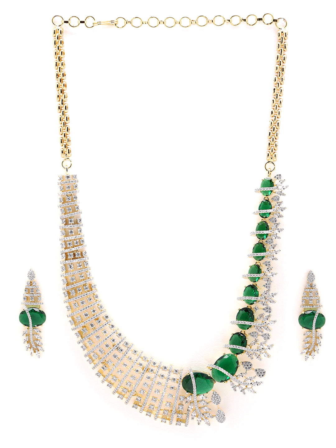 Riwaayat American Diamond Emerald Necklace Set