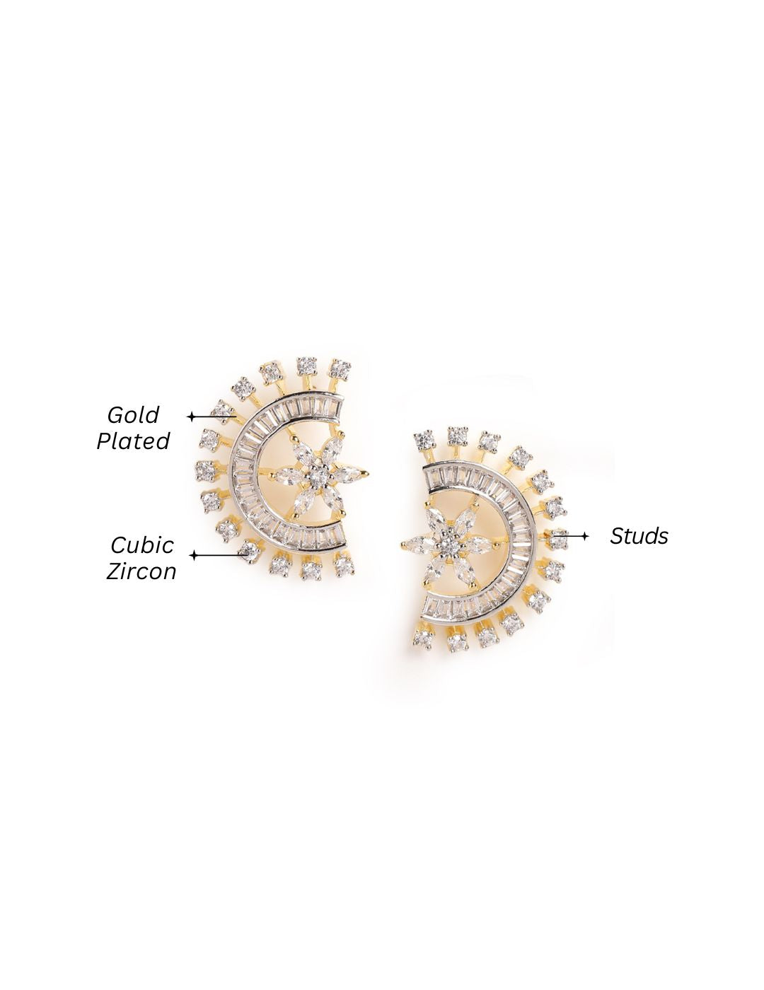 Add a touch of timeless glamour with this necklace set, featuring a delicately layered semi-circular design adorned with sparkling AAA cubic zircon stones. Paired with matching earrings, this set exudes elegance and sophistication perfect for weddings, or special celebrations. Its versatile design complements both traditional and modern outfits. Anti-tarnish, it comes with a one-year plating warranty for added assurance. Secured with hook closure for effortless elegance with every wear.