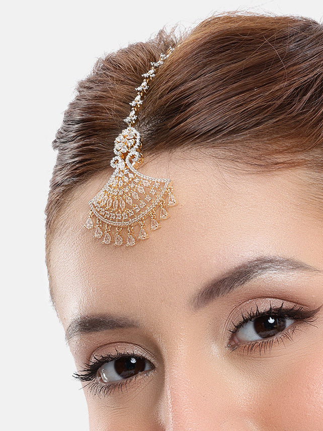 American Diamond Ethereal Gold Maang Tikka