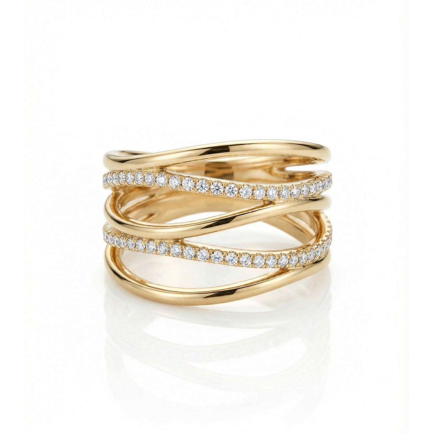 This american diamomd golden ring for women has a layered wave design with studded with zircon. Perfect for gifting to your bestie