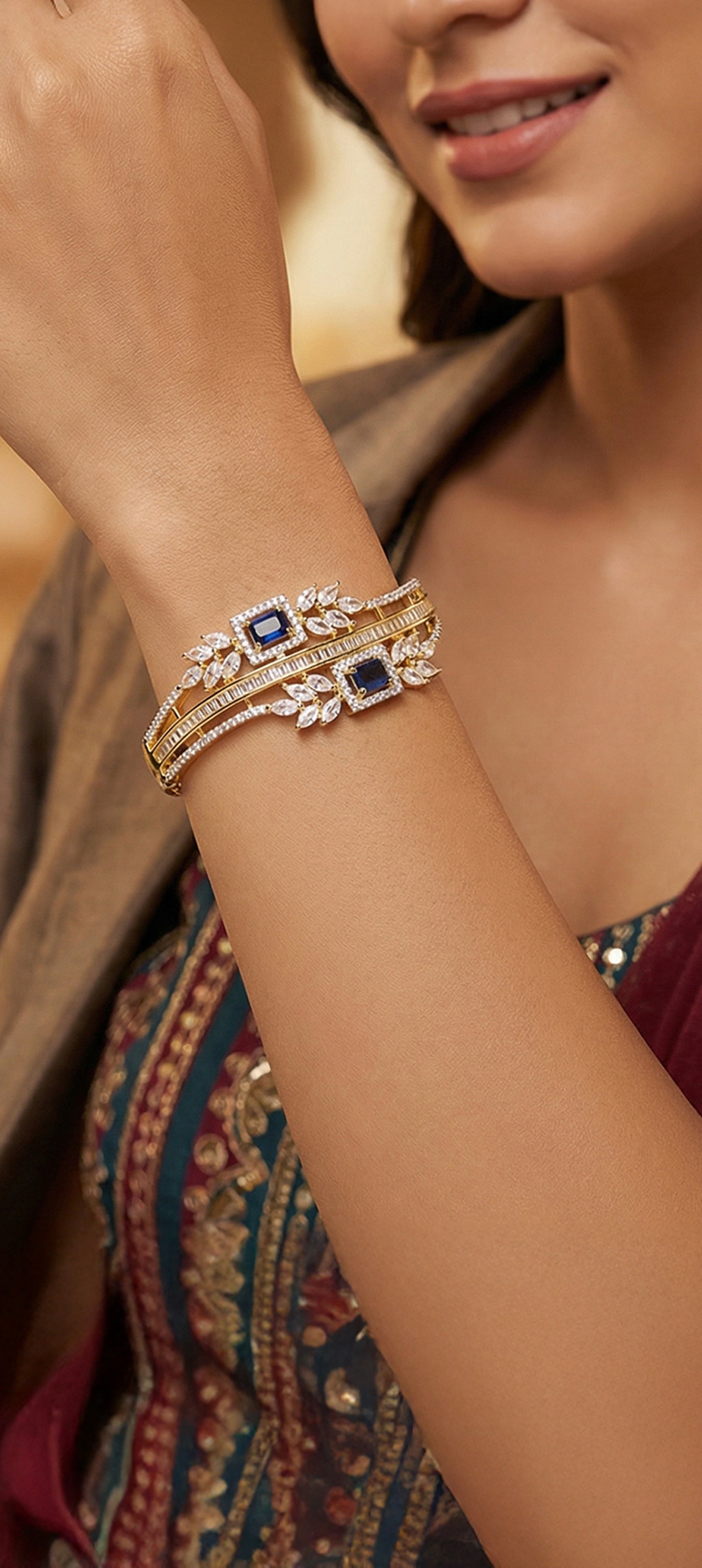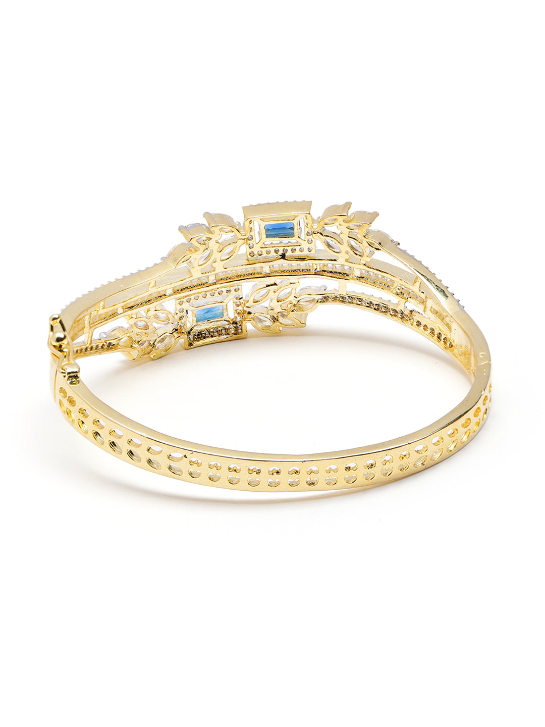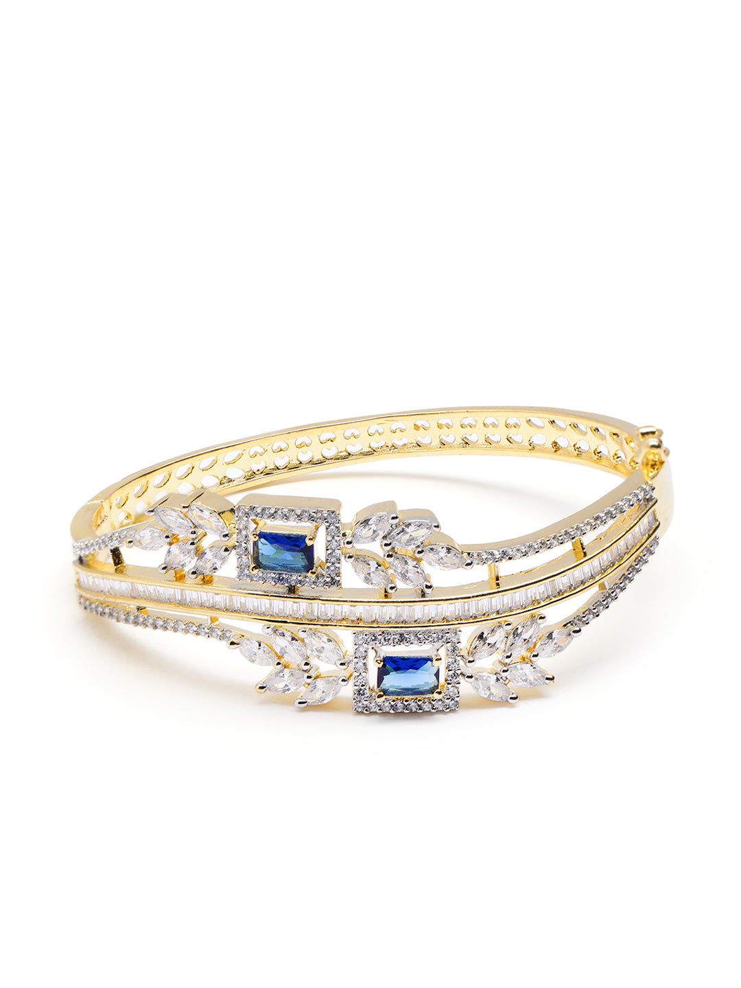A dazzling bracelet for women designed with multiple teardrop motifs encrusted in shimmering AAA cubic zircon stones. Its intricate pattern and gold accents make it a perfect statement piece special occasions and gifting to your loved ones. Secured with clip on closure. This comes with 1 year plating warranty, anti-tar