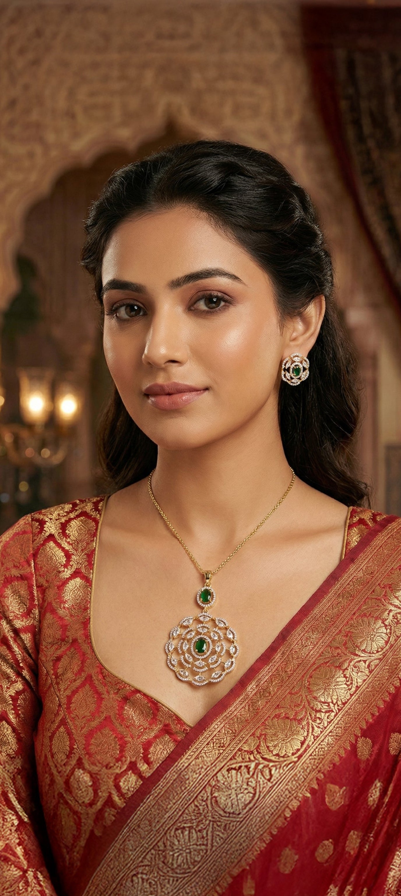 Noorza Amercian Diamond Emerald Pendant Set (without chain)