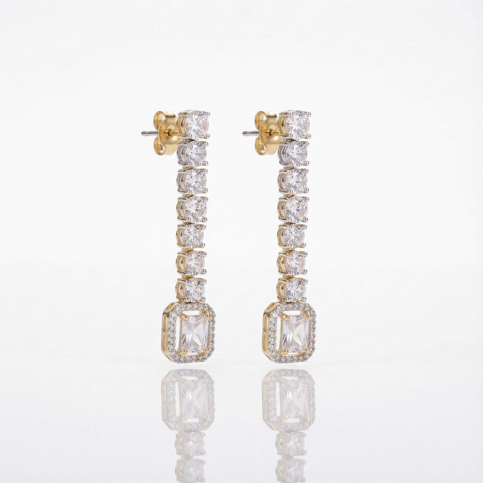 Crafted with precision, these AAA Cubic Zircon drop earrings feature cascading layers of sparkling zircon stones that create a dynamic, modern silhouette, perfect for weddings or festive occasions. Secured with push back closure. This comes with 1 year plating warranty, anti-tarnish for lasting shine and comfort.